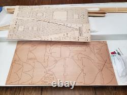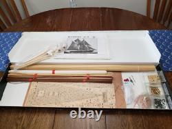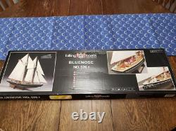 576 laser cut wood plank-on-frame model kit which builds into a 30 long replica of the famous BLUENOSE fishing & racing schooner. This kit is complete with plans, hull ribs, strip wood, fittings and sail cloth to build a beautiful museum quality model schooner. This kit is complete and never started, all you will need to add is glue, paint and talent! Do not confuse this kit with the smaller Billings Bluenose II kit.