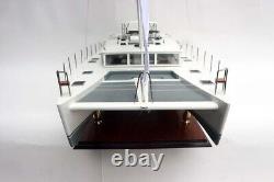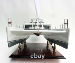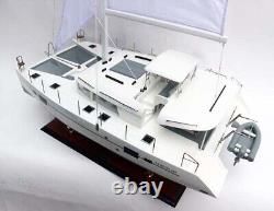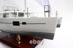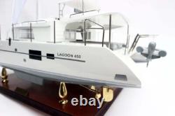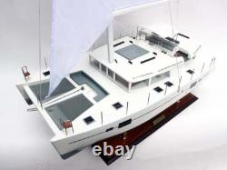Precision Wooden Boat Model Luxury Yacht Lagoon Catamaran 450F L27.6 New. Luxury Yacht Cruiser "LAGOON CATAMARAN 450F". Overall length 14m, beam 8m. Features a spacious deck, cabin and flybridge. Precisely crafted by gluing each board together, all wood except for some decorative metal, no plastic is used.