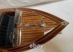 MESURE 18" X 6" AU POINT LE PLUS LARGE. FAIT MAIN EN BOIS NATUREL. CRAQUELURES D'USURE NORMALES À L'ARRIÈRE DU BATEAU.